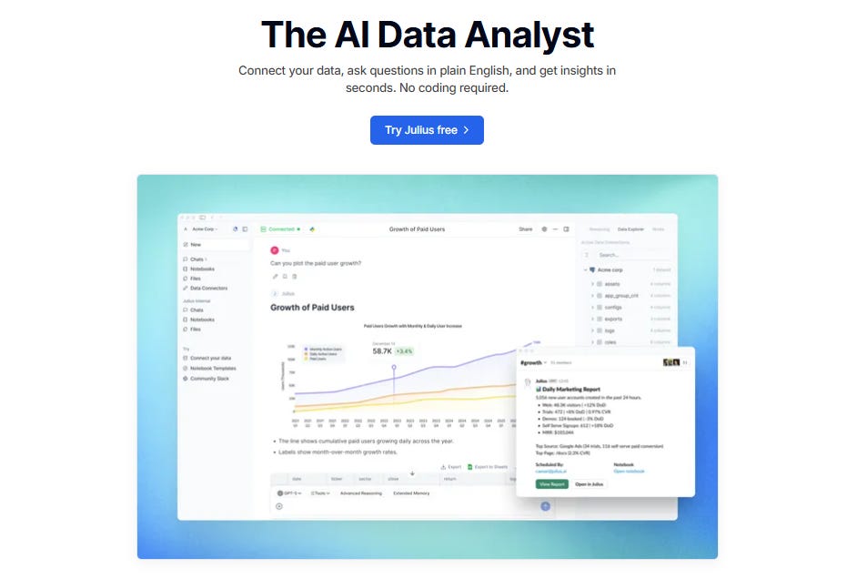 That’s where Julius has quietly become a lifesaver for thousands of professionals — marketers, analysts, finance teams, founders, anyone who needs to make decisions without spending hours digging through spreadsheets.