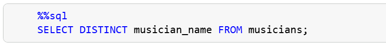 1. You have a table called musicians, and you want to retrieve only the unique names from the musician_name column. How would you write the query, considering that names with different cases (like ‘Ed Sheeran’ and ‘ed sheeran’) should still be treated as duplicates?