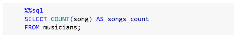 If you wanted to count all rows regardless of whether song is NULL, you could use COUNT(*), but that’s a topic for a later day in the book.